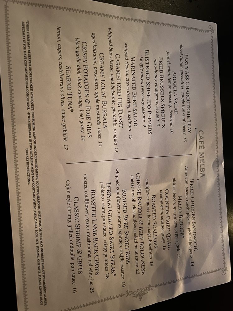 - Customer Favorites: Guests rave about the Melba Burger and the unique Charcuterie Plate, ideal for light bites.